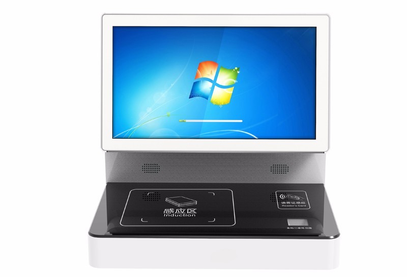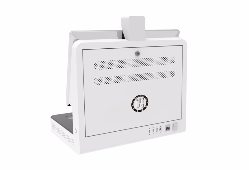 标签信息的录入和转换设备,集成22寸高清触摸屏,一体式外观,大气简洁。配备标签识别区和馆员刷卡区,可选配人脸识别和高拍仪、二维码扫描仪。