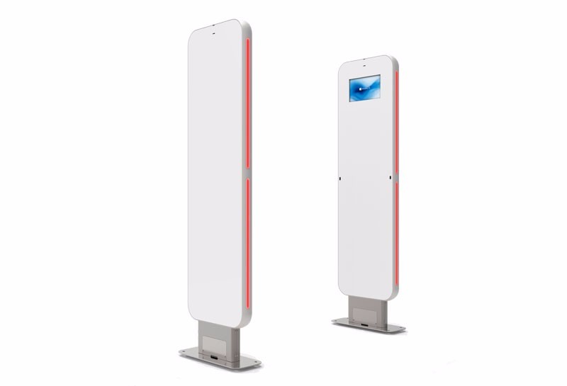 2.超高频RFID智能安全门禁产品,集成红外触发读取,进出判断,声光离线EAS报警机制,3D识范围,扫描无盲区,识别率高,可选配10.1寸一体机,windows系统;此款顶部圆弧顶。